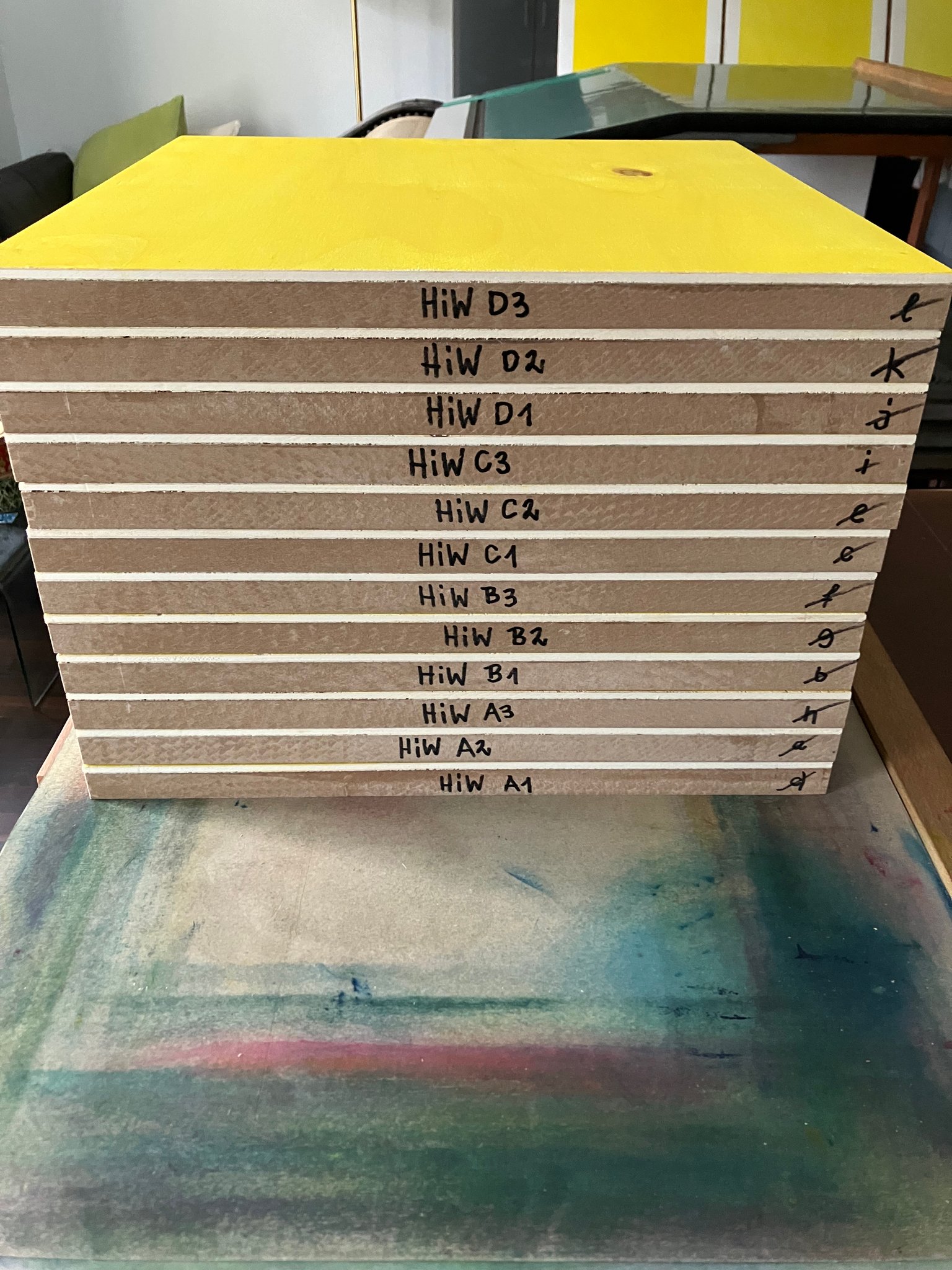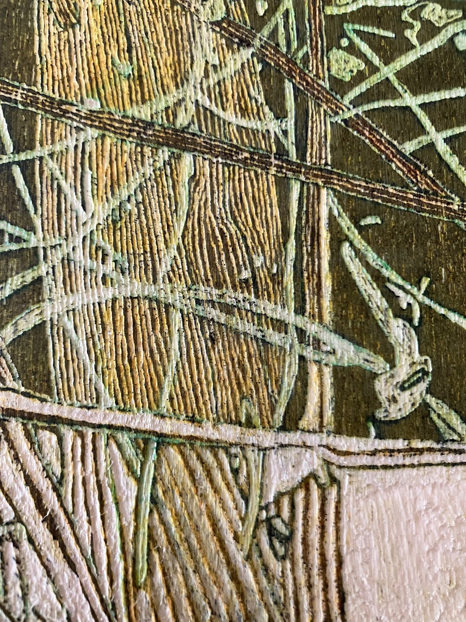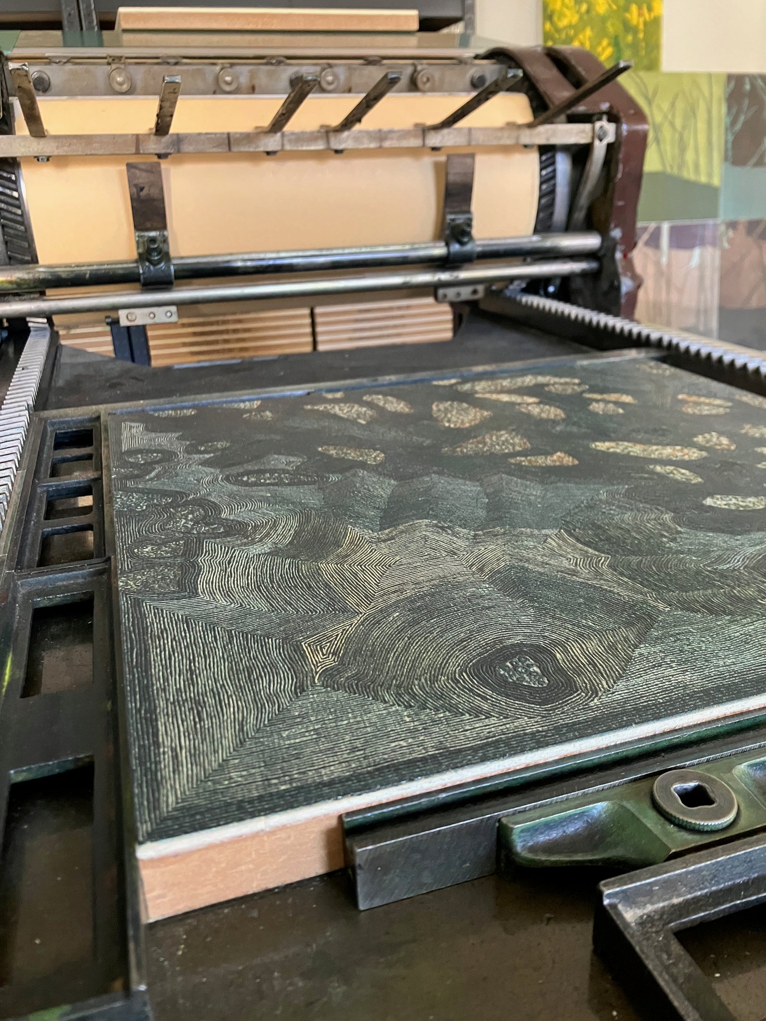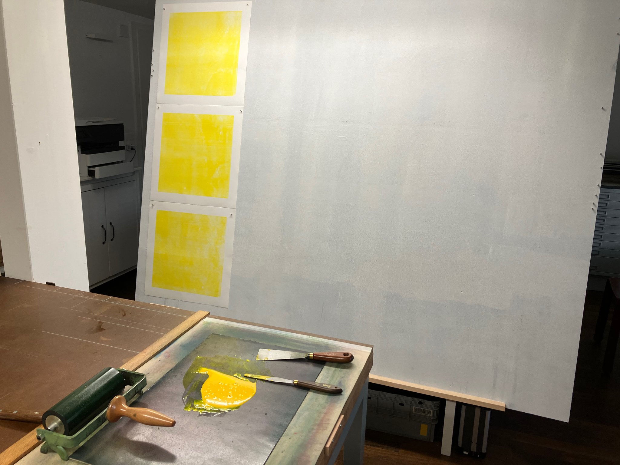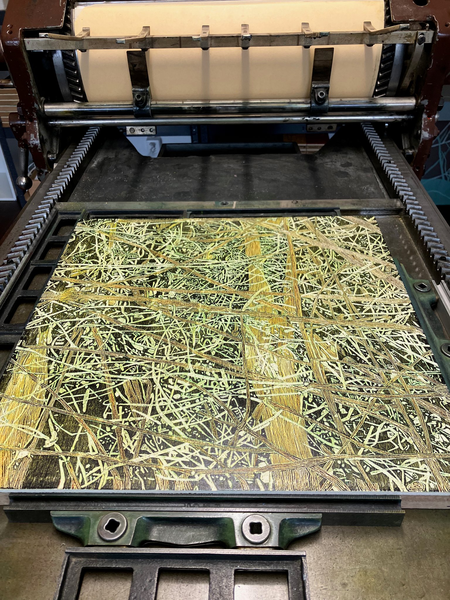 Originaldruckgrafiken, 12 Einzelblätter, handgedruckt auf Büttenpapier, 24 Druckstöcke, mehrfarbig, auf Leinwand aufgezogen, 160 x 120 cm, Unikate