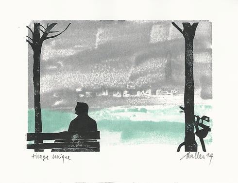 Original-Linolschnitt, 2 Farben
