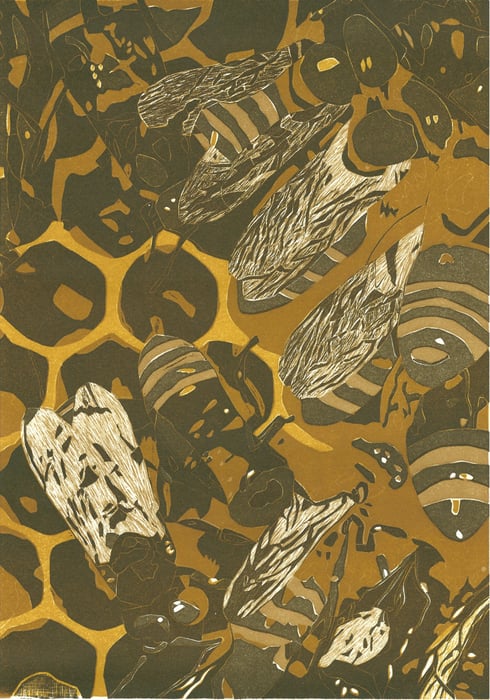 Original-Linolschnitt, 5 Farben