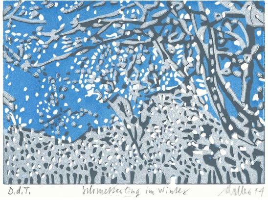 Seit mehr als 20 Jahren darf ich für verschiedene Firmen Originaldruckgrafiken (Farblinolschnitte, Farbholzschnitte) als Weihnachtsgeschenke o.ä. für deren Kunden drucken. Die Kunden von Opacc Software AG erhalten diese Drucke seit 1997 (Modul I).