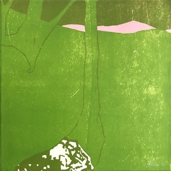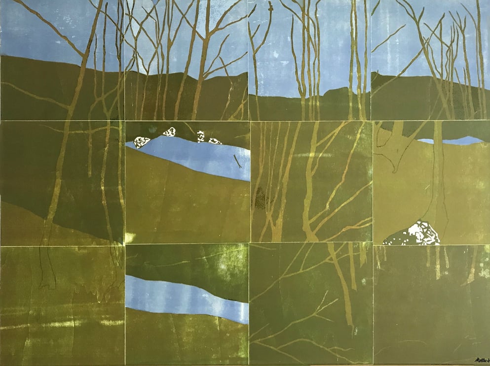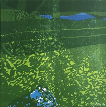 Holzschnitt, verschiedene Druckplatten Kleine Emme, Blumenwiese II und Rümlig 40 x 40 cm, handgedruckt auf einer KORREX-Andruckpresse,