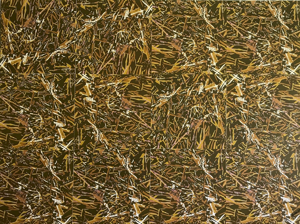 Holzschnitt, verschiedene Druckplatten Grasbüschel 40 x 40 cm, handgedruckt auf einer KORREX-Andruckpresse,