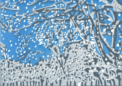Seit Mai 2017 widme ich mich mit grosser Freude voll und ganz dem künstlerischen Schaffen und dem Drucken und kann all die Erfahrungen der vergangenen Jahre einbringen. Meine aktuellen Arbeiten sind grossformatige (160 x 120 cm) Holzschnitte, welche ich auf einer Andruckpresse drucke und dann auf Leinwand aufziehe.